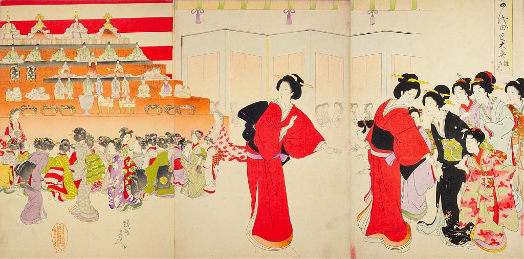 In 1644 (Kan’ei 21), lemitsu’s daughter, Chiyo-hime, received dolls for her birthday, which happened to fall on March 3rd. It now became increasingly fashionable to give dolls and lacquered accessories to girls to help them celebrate Jōshi no Sekku.4